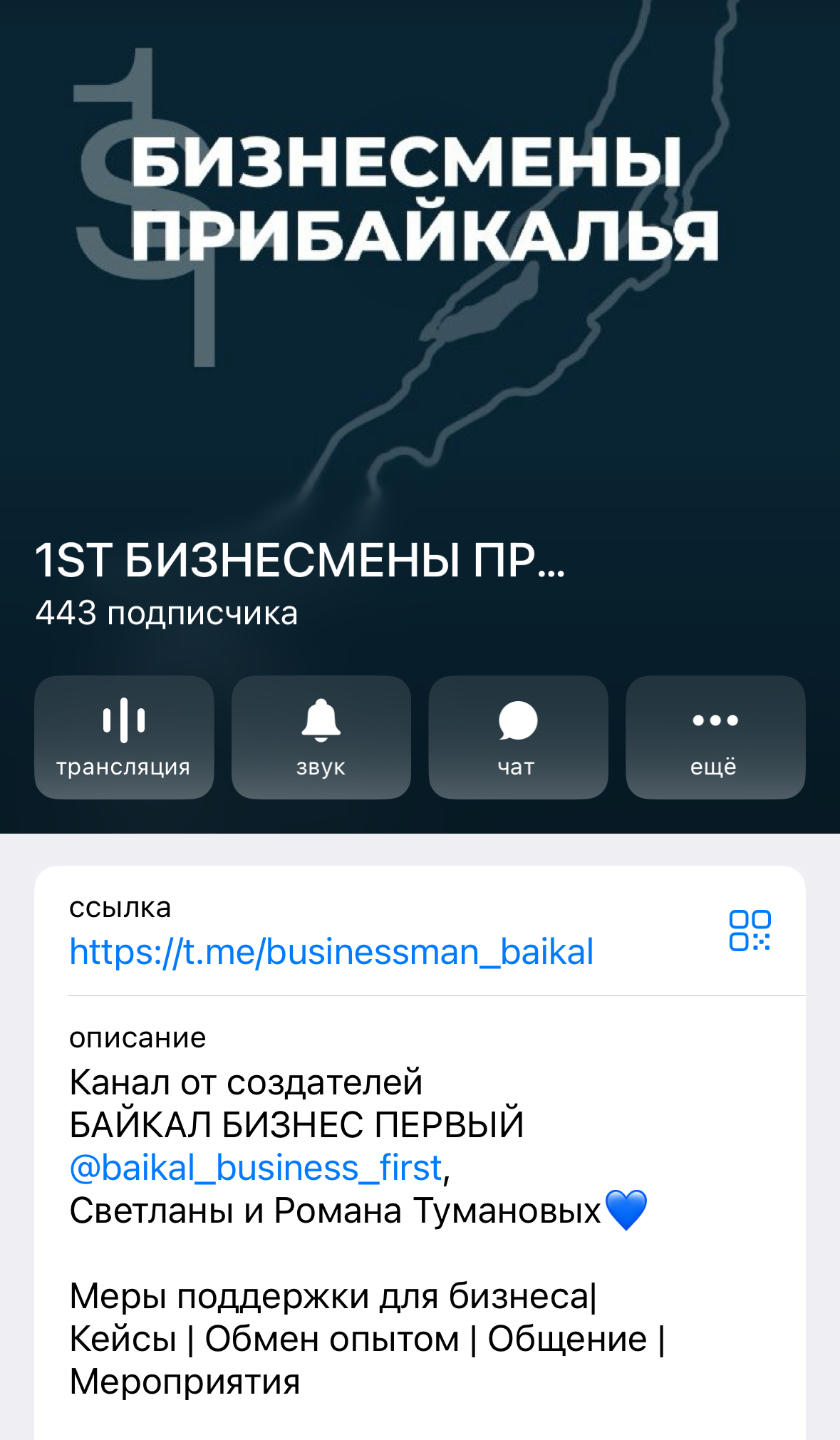 Телеграм-канал «1ST БИЗНЕСМЕНЫ ПРИБАЙКАЛЬЯ» — площадка для предпринимателей Иркутской области, которые хотят личного развития, развития своего бизнеса, окружения и качественного бизнес-контента.